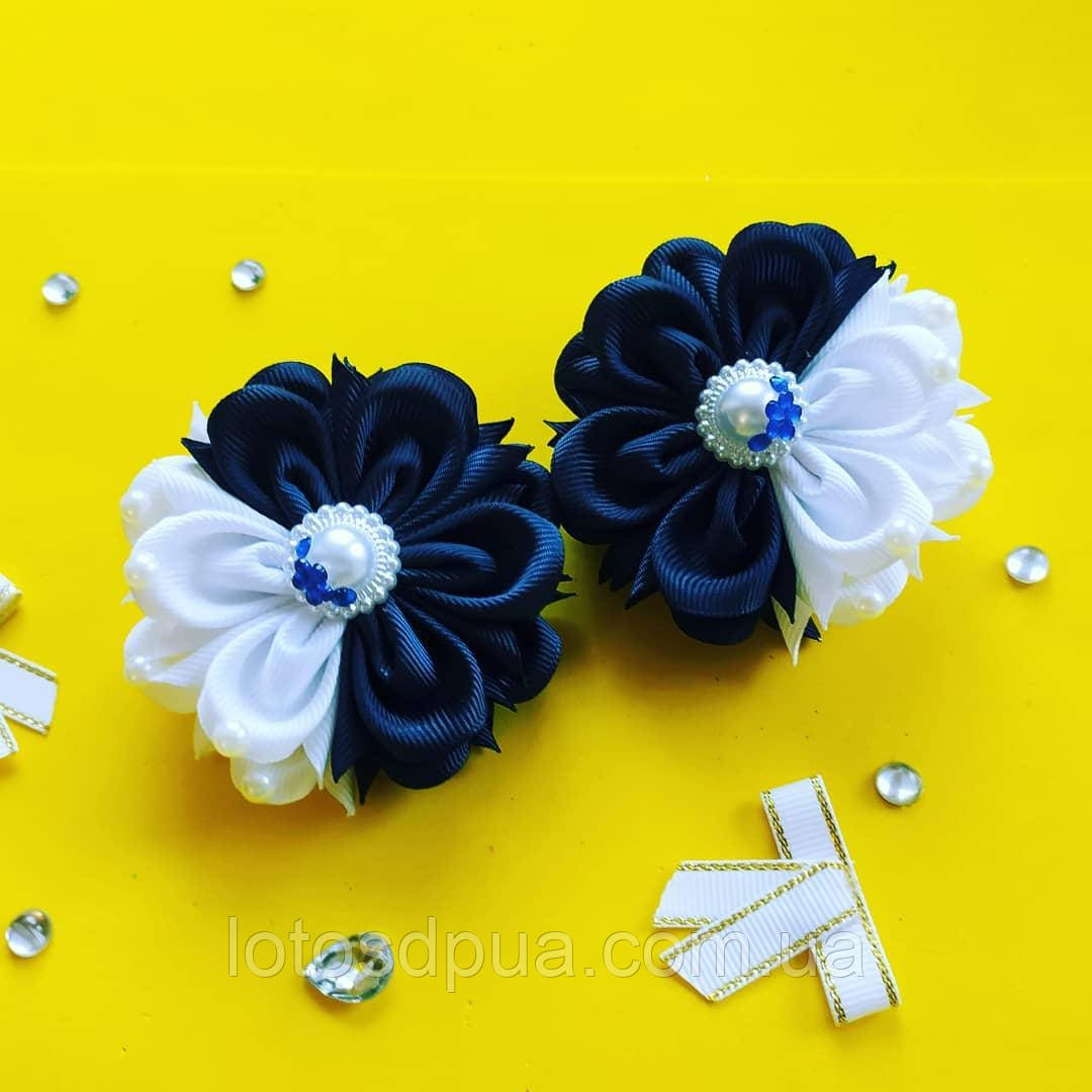 Дитячий бант з репсової лєнти на резинкі Глорія, синій з білим